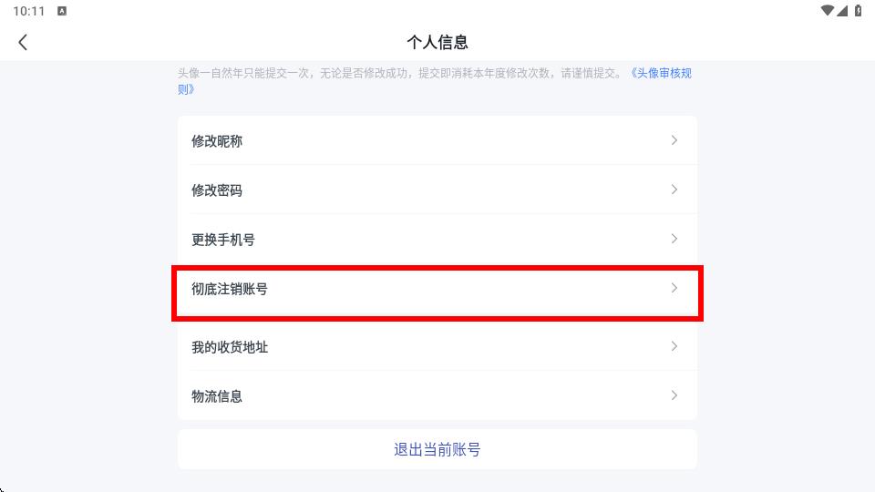 3、在個(gè)人信息設(shè)置界面里找到徹底注銷賬號(hào)選項(xiàng),點(diǎn)擊后按照提示操作即可完成賬號(hào)注銷。