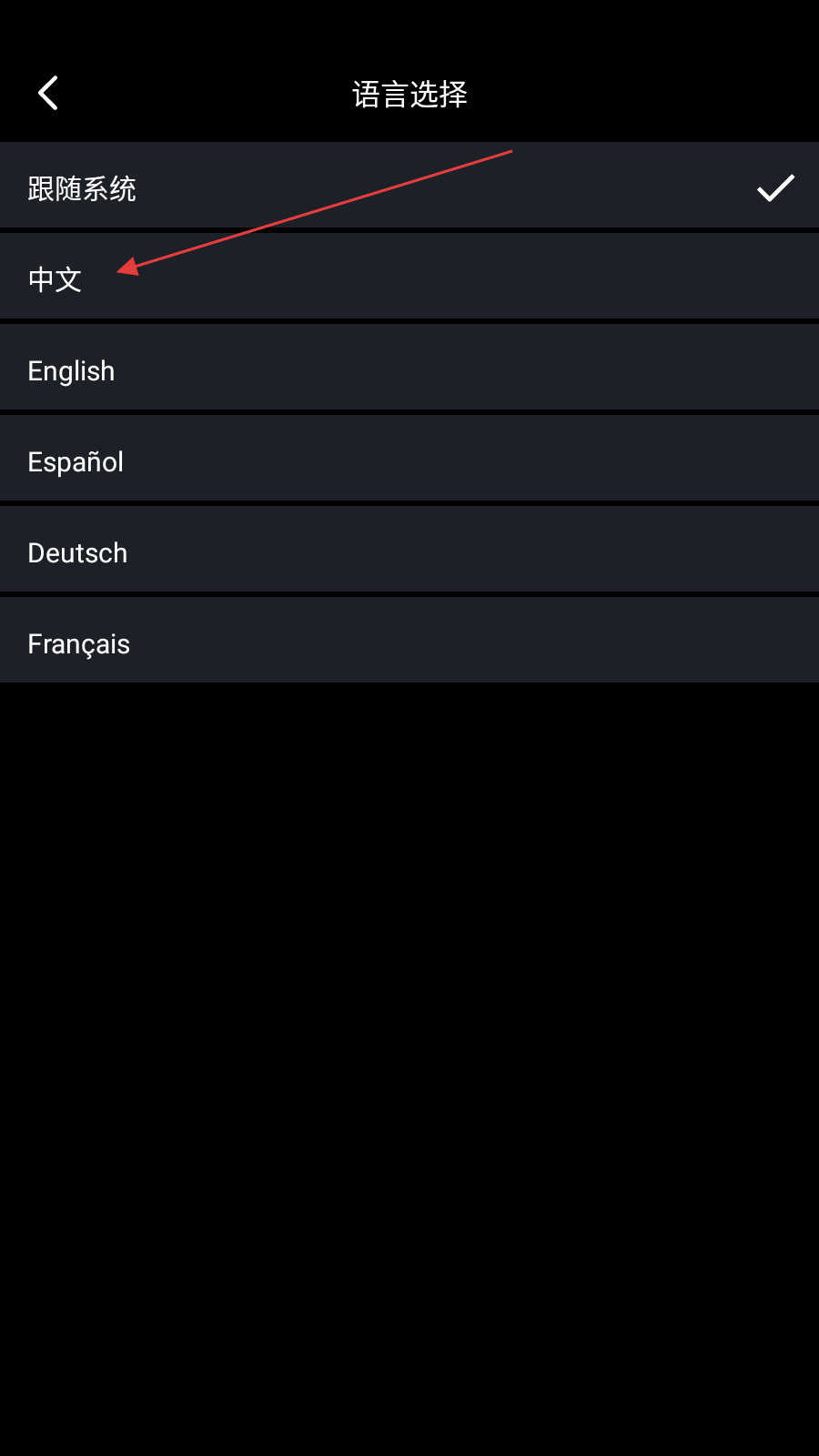 3、在語言選擇界面中,點擊中文選項,即可將應用界面切換為中文顯示。