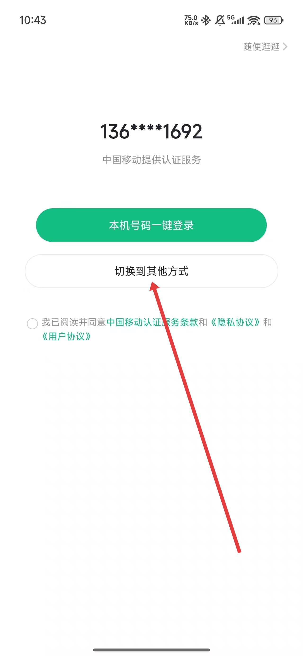 1、在進入到事考幫App后,點擊登錄頁中的切換到其他方式按鈕,切換登錄方式。