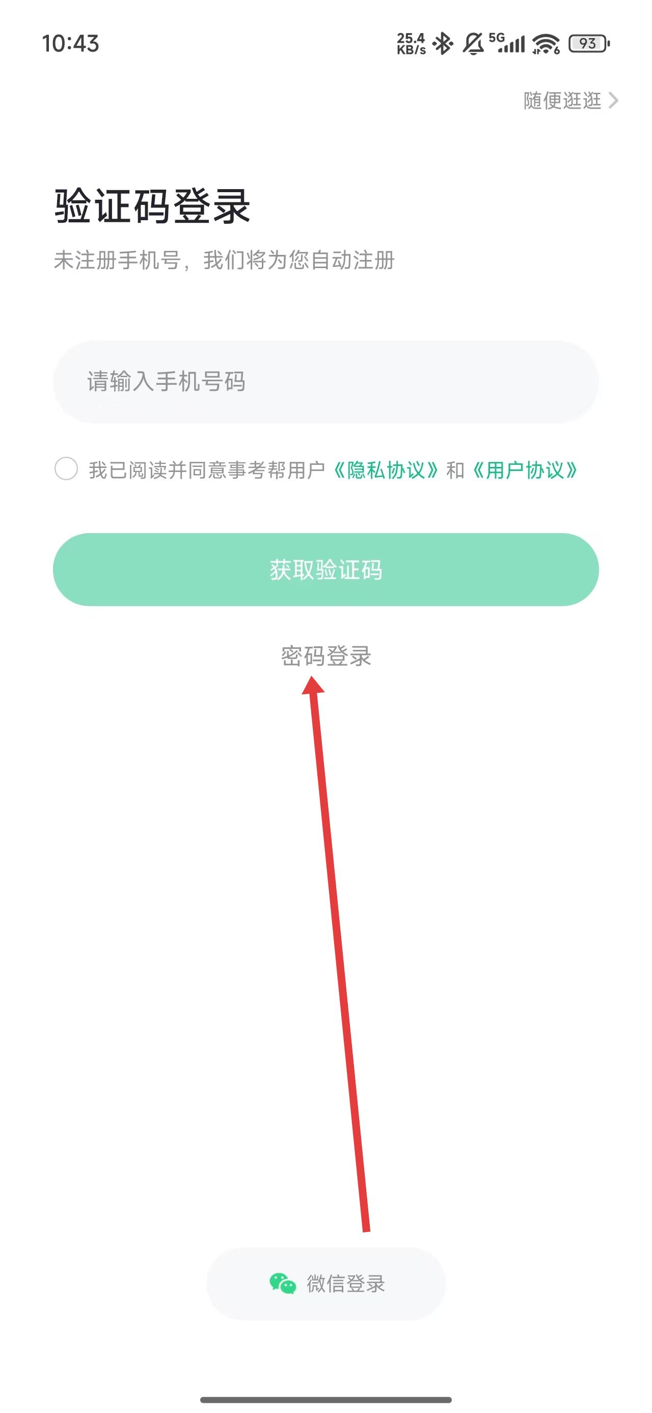 2、在驗證碼登錄頁面中,可以點擊下方密碼登錄按鈕,切換為使用密碼登錄方式。