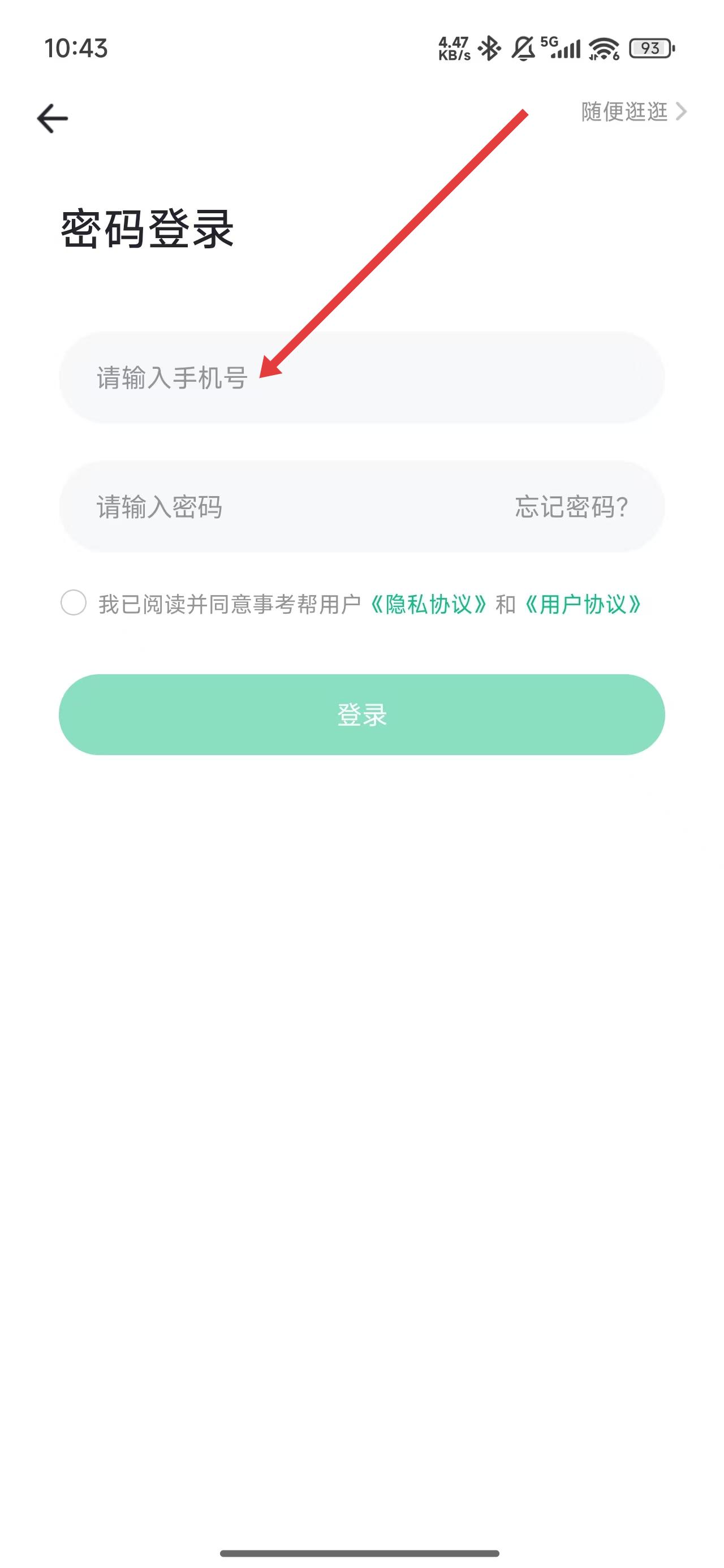 3、在進入到密碼登錄頁面后,點擊輸入框填寫手機號密碼完成登錄操作。