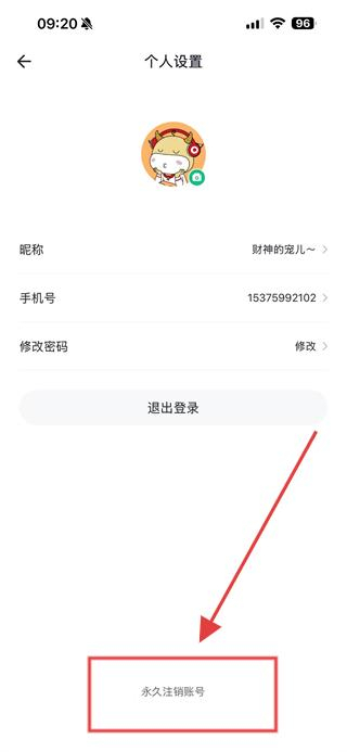3、在個人設置界面里,點擊永久注銷賬號選項,進入賬號注銷頁面。