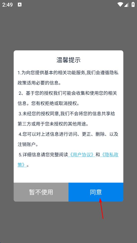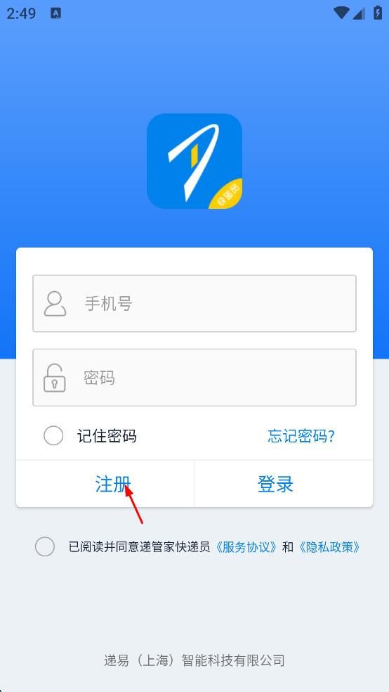 1、打開遞管家快遞員APP,在“溫馨提示”彈窗中,點擊“同意”,進入登錄注冊頁面。