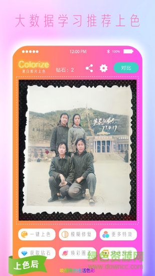 colorize上色軟件可以便捷修復(fù)老照片,通過ai修復(fù)技術(shù),可以為黑白老照片智能上色,提高像素,為老照片賦予新的活力和色彩,并且修復(fù)以后非常的自然,歡迎有需要的朋友下載使用!