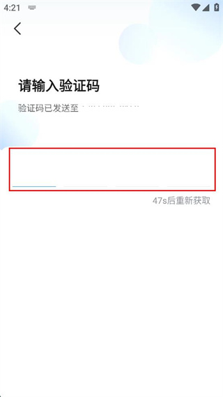 4、進入請輸入驗證碼頁面,將收到的驗證碼填入對應輸入框完成操作。