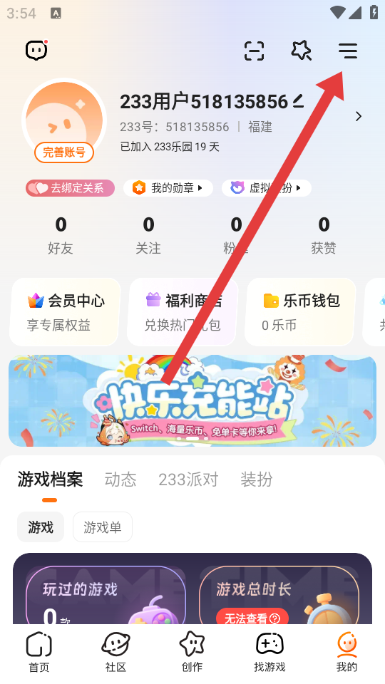 1、在我的頁面右上角,點(diǎn)擊更多選項(xiàng)圖標(biāo),打開側(cè)邊欄的菜單。
