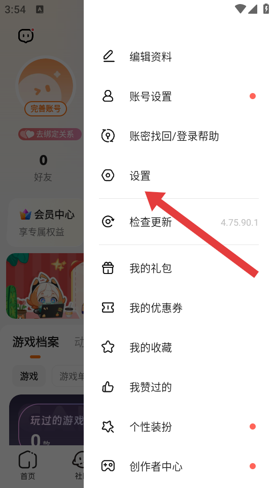 2、在側(cè)邊欄的菜單中,需要點(diǎn)擊設(shè)置的選項(xiàng),進(jìn)入設(shè)置的頁面。