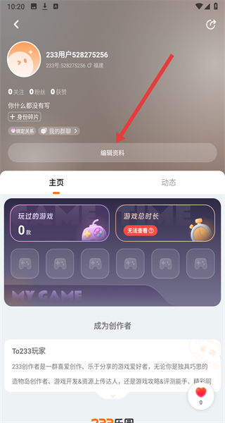 2、在我的主頁中可以點(diǎn)擊編輯資料按鈕,進(jìn)行編輯修改個人資料。