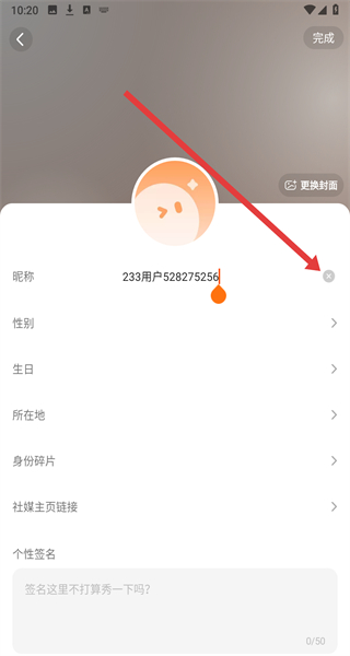3、在個人資料頁面中,可以點(diǎn)擊昵稱選項(xiàng)右側(cè)刪除按鈕,刪除原有昵稱進(jìn)行編輯。