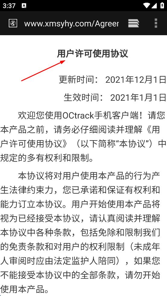 1、打開CTrack應(yīng)用,在初始頁(yè)面點(diǎn)擊“多設(shè)備登錄”,進(jìn)入用戶許可使用協(xié)議頁(yè)面,仔細(xì)閱讀協(xié)議內(nèi)容 。