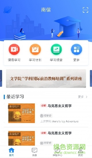 2、登錄后進入到首頁頁面中,在頁面中可以看到最近學習的課程內(nèi)容;