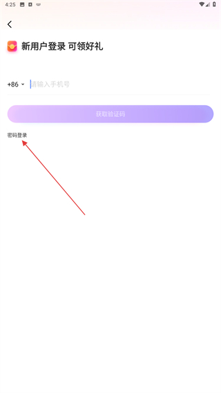 2、在登錄的頁面內(nèi),用戶需點(diǎn)擊密碼登錄的按鈕。