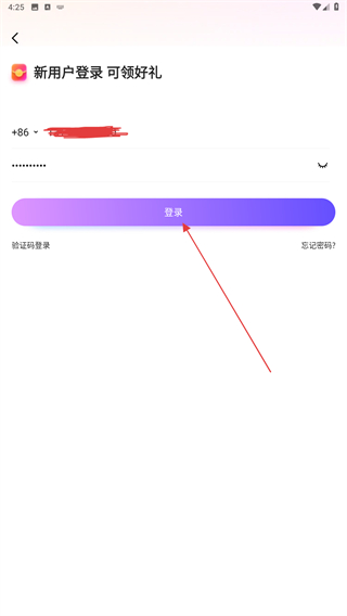 3、進(jìn)入該界面內(nèi),輸入手機(jī)號、密碼再點(diǎn)擊登錄的按鈕即可。