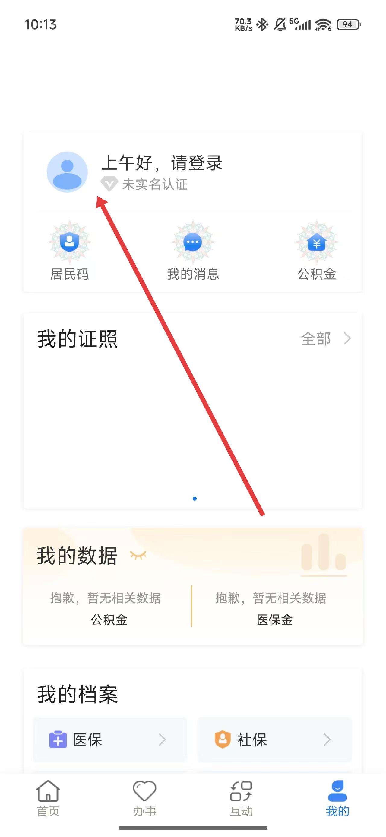 2、在進(jìn)入到我的主頁(yè)后,可以點(diǎn)擊頭像區(qū)域進(jìn)行登錄操作。
