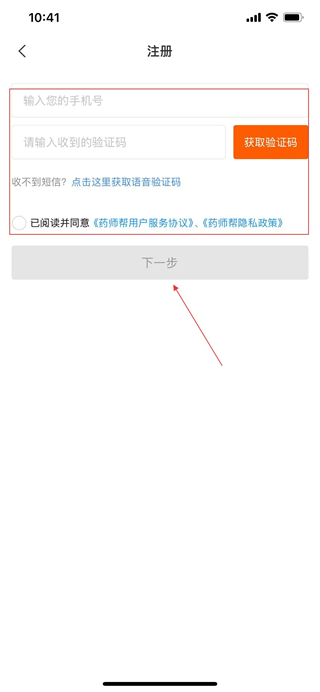 3、輸入手機號,獲取并輸入驗證碼,勾選協(xié)議后,點擊下一步。