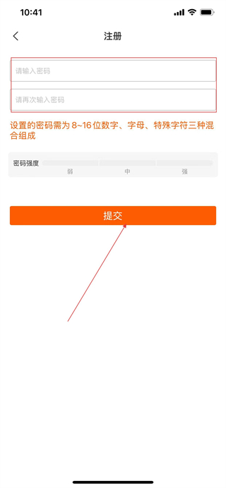 4、輸入密碼并再次確認密碼,點擊提交,即可完成賬號注冊。