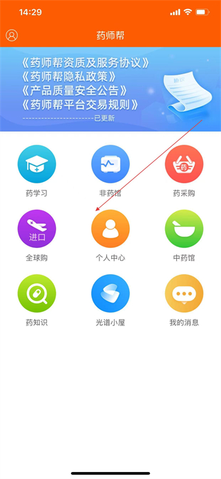 1、打開藥師幫App的首頁,點擊個人中心選項,進入個人中心頁面。