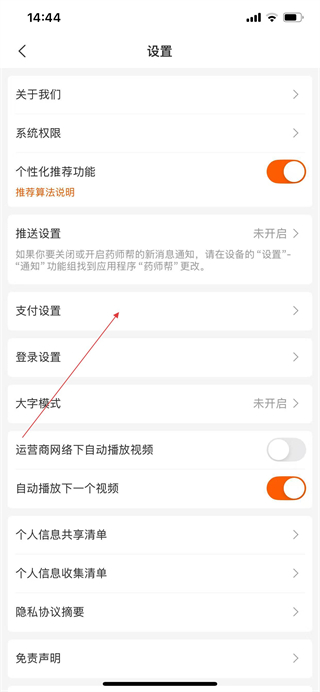 3、在設(shè)置頁面點擊支付設(shè)置選項,進入支付設(shè)置頁面。