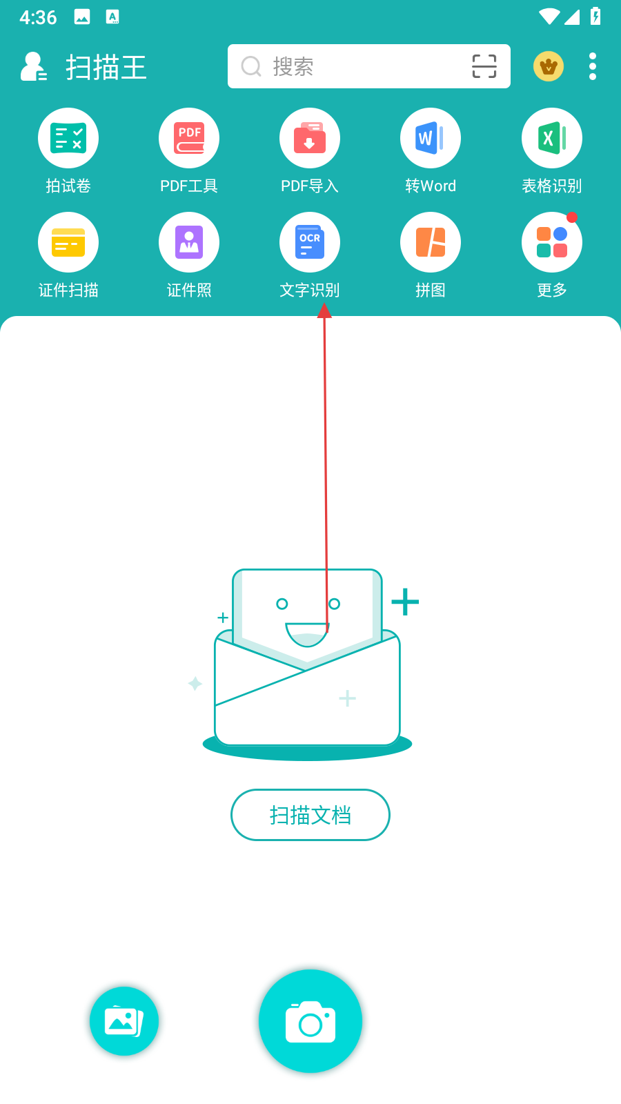 1、打開掃描王應(yīng)用,在主界面找到文字識別選項(xiàng)并點(diǎn)擊。