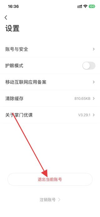 3、進(jìn)入設(shè)置頁面后,點(diǎn)擊退出當(dāng)前賬號選項(xiàng)。