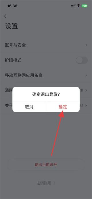 4、在彈出的提示框中,點(diǎn)擊確定即可退出登錄。