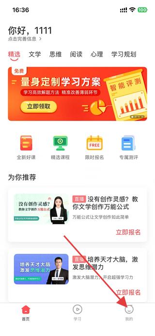 1、打開掌門優(yōu)課,點(diǎn)擊底部導(dǎo)航欄的我的選項(xiàng)。
