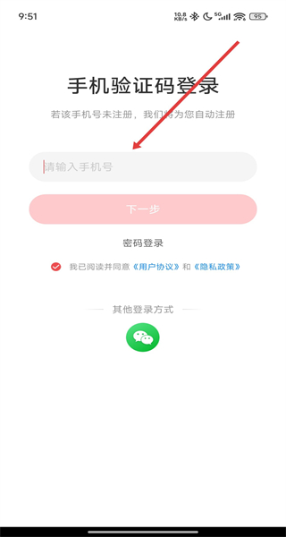 2、在登錄界面,選擇手機(jī)驗(yàn)證碼登錄,輸入手機(jī)號碼后點(diǎn)擊下一步,進(jìn)入輸入驗(yàn)證碼界面。