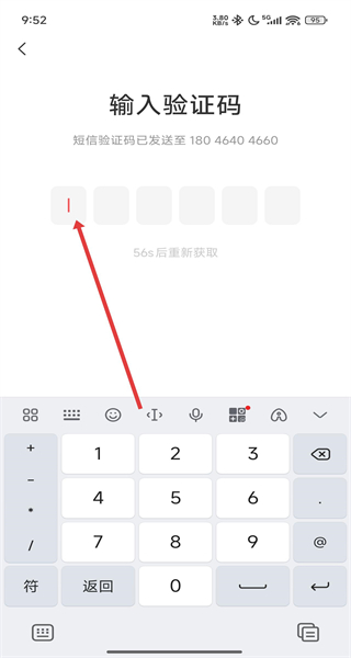 3、在輸入驗(yàn)證碼界面,輸入收到的短信驗(yàn)證碼,完成登錄操作。