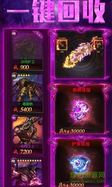 3、升級武器必能隨意合成,將相同的裝備合并提升更高的檔次,成為真正的極品神器。