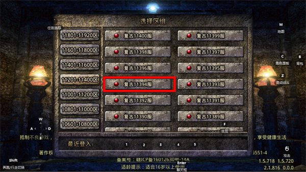 3、在區(qū)組分類下,選擇具體的服務(wù)器,如復(fù)古11394服。