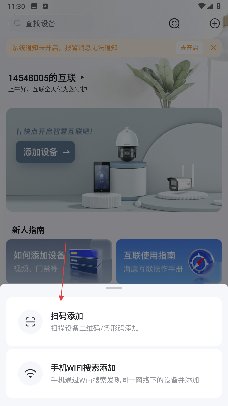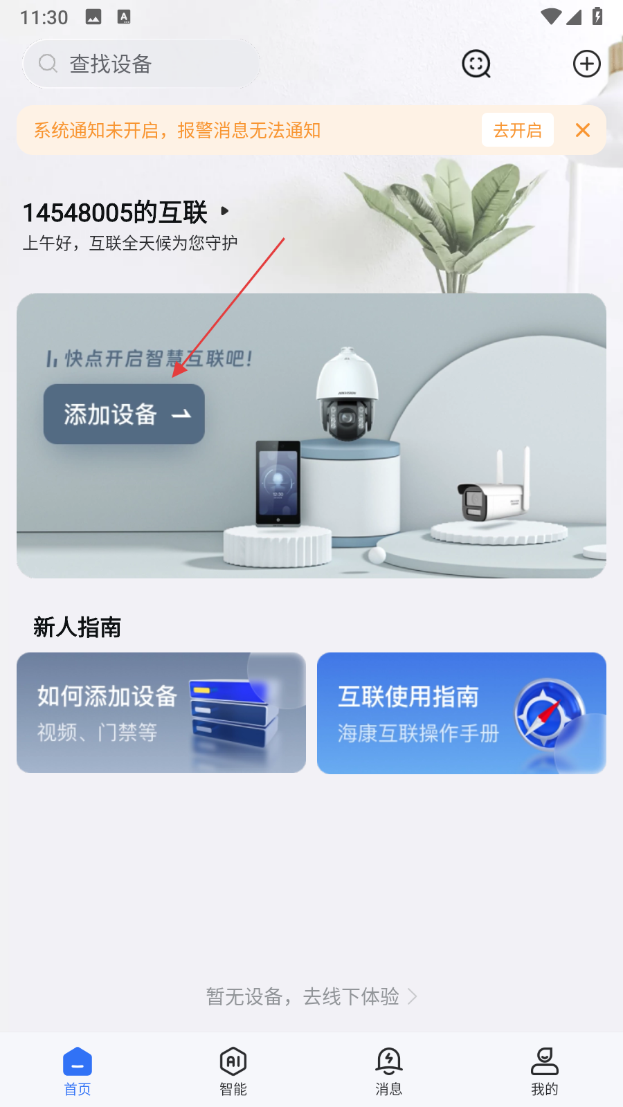 1、打開??祷ヂ揂PP,在首頁點擊添加設備按鈕。