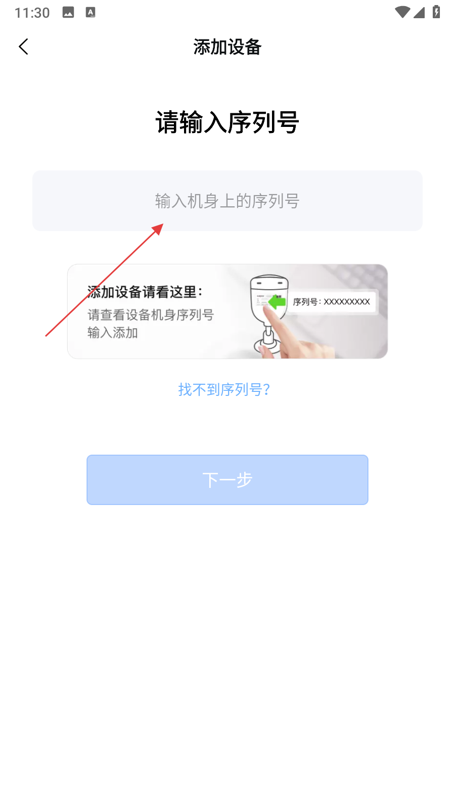 4、在手動添加的請輸入序列號頁面,輸入設備機身上的序列號,按照提示連接即可。