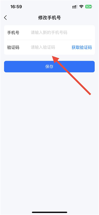 4、在修改手機號頁面輸入新手機號,獲取驗證碼,點擊保存按鈕,即可完成手機號修改操作。
