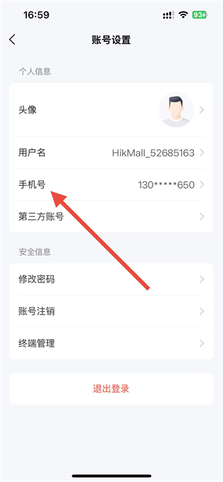 3、在賬號設置頁面點擊手機號選項,進入修改手機號頁面。