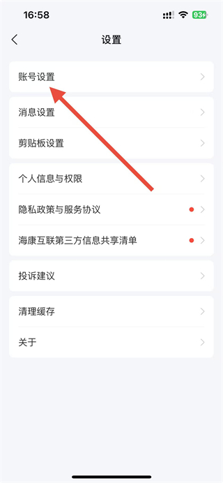 2、在設置頁面點擊賬號設置選項,進入賬號設置頁面。