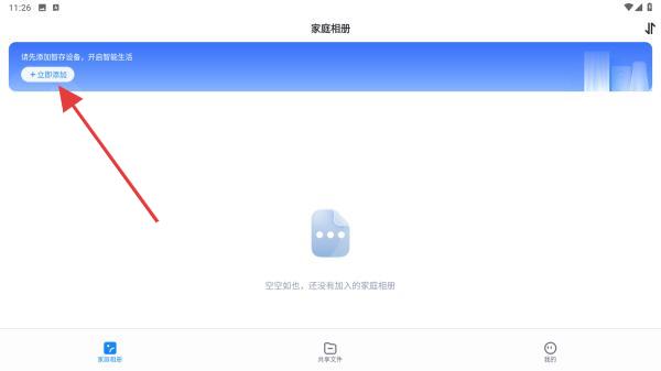 1、進(jìn)入app首頁頁面,點(diǎn)擊左上角頂部藍(lán)色欄的立即添加的按鈕。