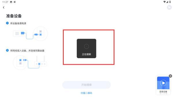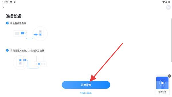 2、需要與該設(shè)備連接同一個(gè)wifi網(wǎng)絡(luò),將以下準(zhǔn)備設(shè)備都準(zhǔn)備好后可以點(diǎn)擊開始搜索。