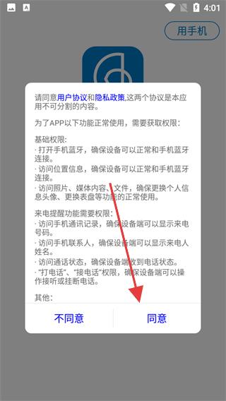1、打開Haylou Fit APP,在用戶協(xié)議和隱私政策頁面點擊同意。