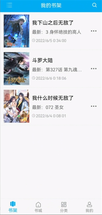 1、首先一進入這里就是軟件的首頁,在這里可以看到自己的書架里所收藏的書籍,快速找到自己想要觀看的動漫;