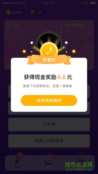 猜歌總動員紅包版是一款可以讓你猜歌名賺錢的趣味賺錢游戲,想必大家都聽過不少的歌曲吧,也有很多拿手擅長的歌曲,那么今天的游戲就是猜歌名,輕松的闖關(guān)猜歌名,根據(jù)其中的歌詞或者前奏,快速的選擇出答案即可通過。猜歌玩游戲還能有錢賺,心動不如行動哦!