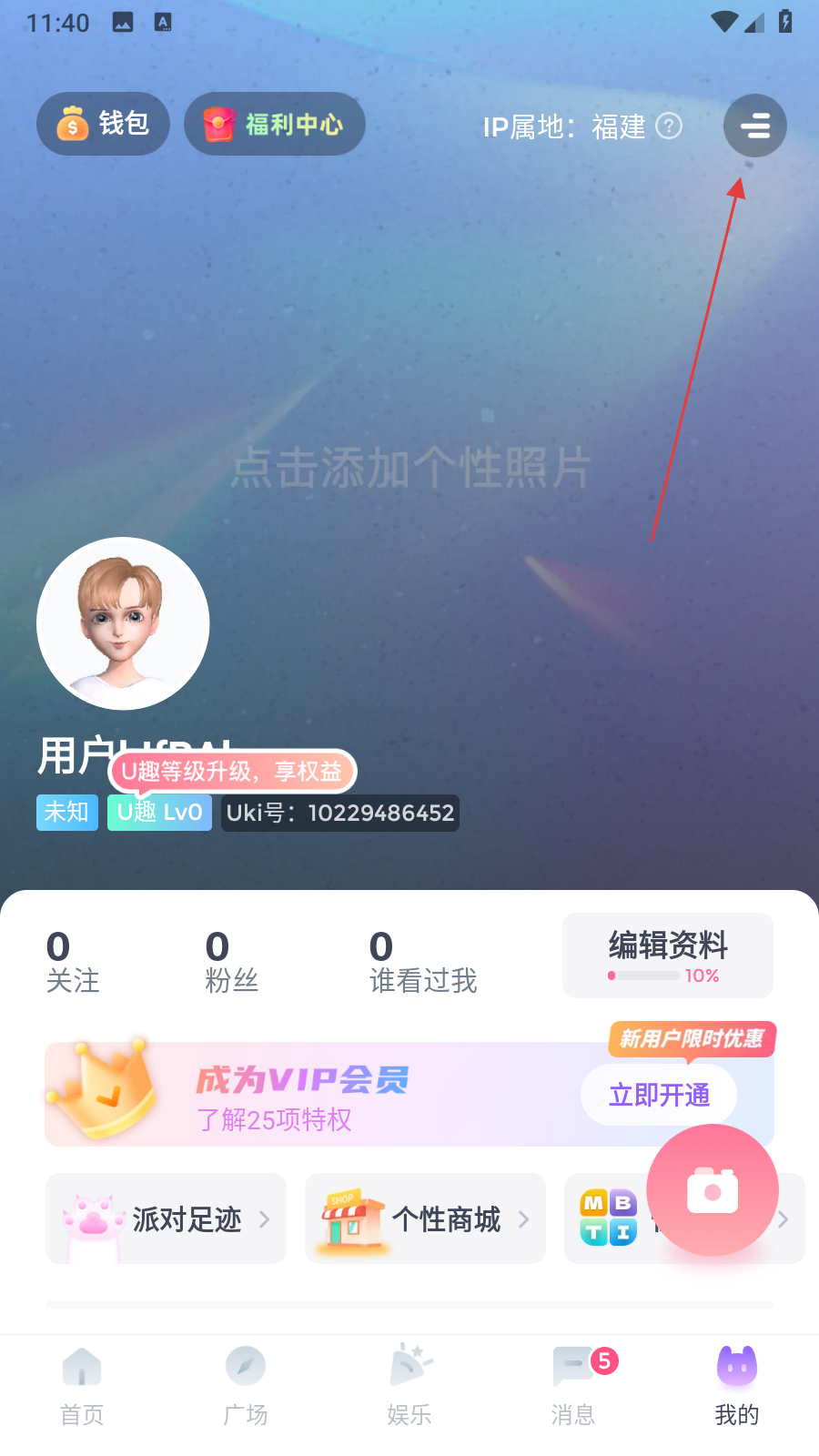 1、打開Uki APP,點擊右下角我的,進(jìn)入個人頁面。