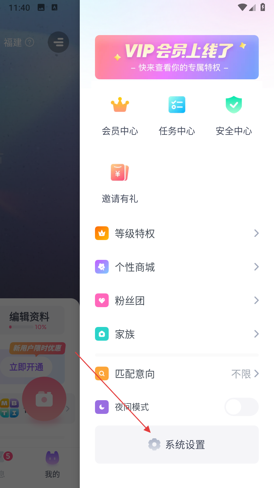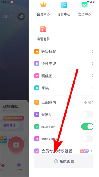 3、在彈出的隱藏菜單中,向下滑動找到并點擊系統(tǒng)設(shè)置選項,進(jìn)入設(shè)置界面。