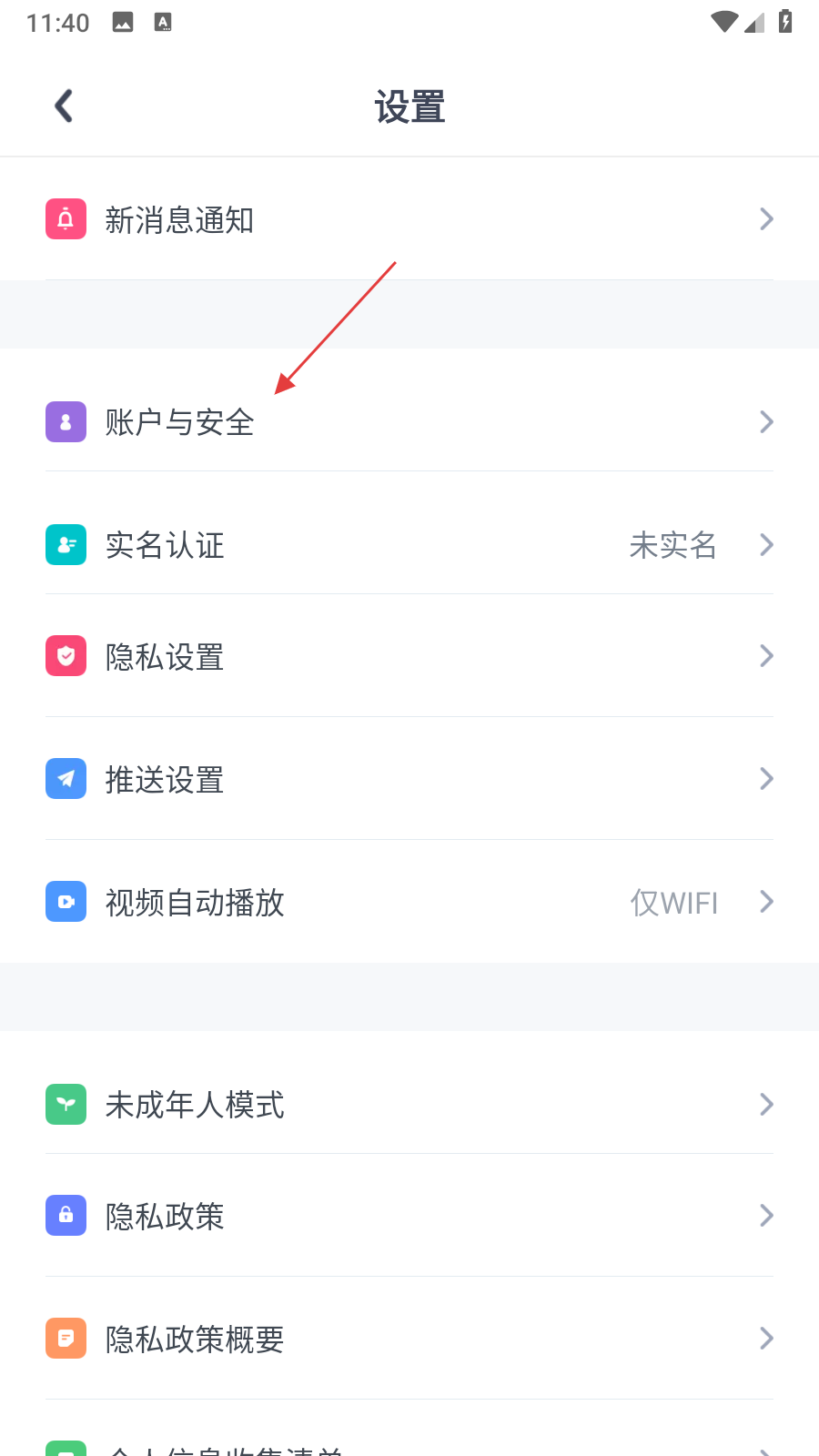 3、在設(shè)置界面,點擊賬戶與安全選項,進(jìn)入賬戶安全頁面。