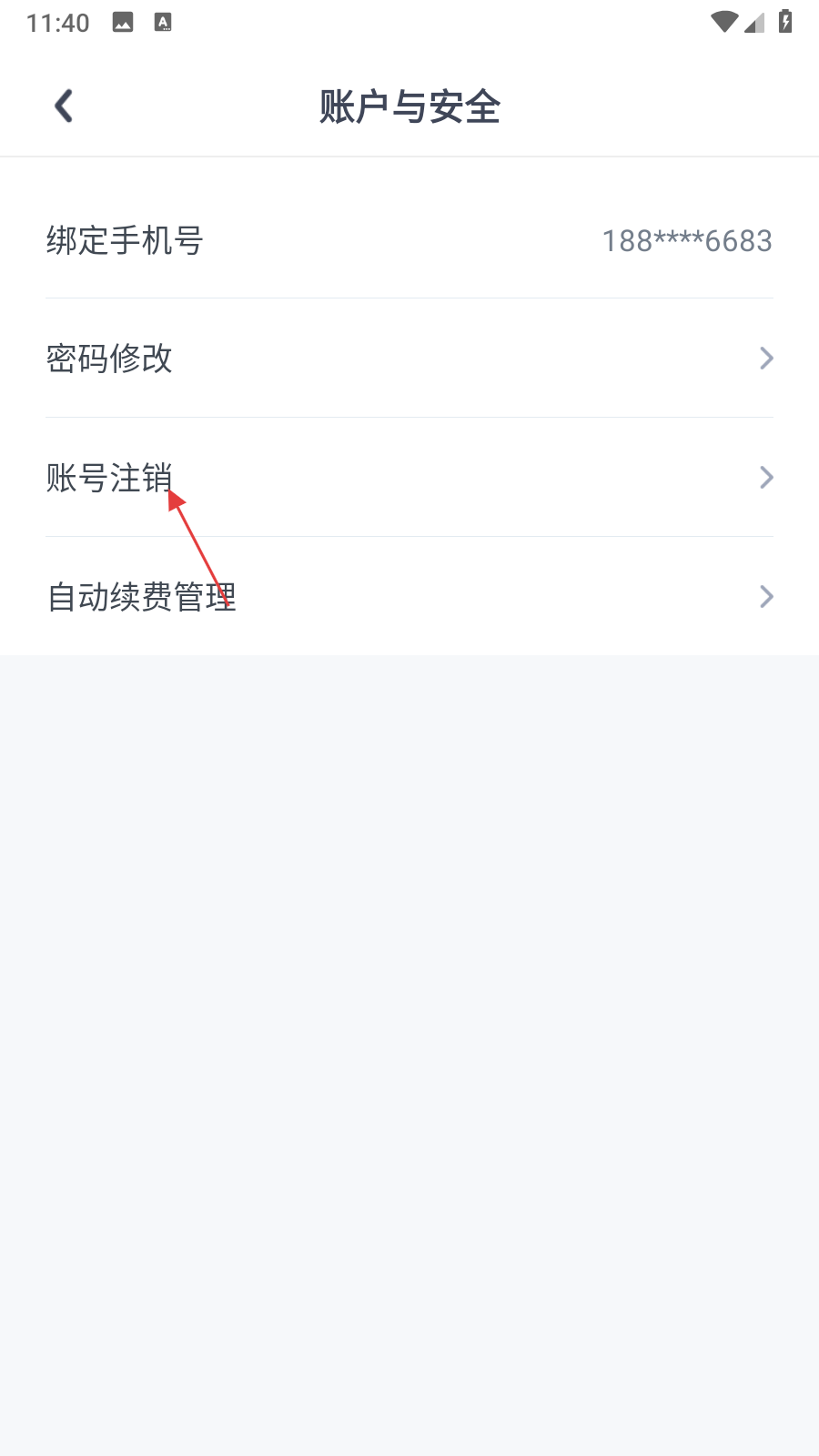 4、在賬戶安全頁面,點擊賬號注銷選項,按提示提示完成注銷流程。