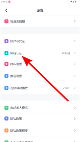4、在設(shè)置界面里,點擊實名認(rèn)證選項,按照后續(xù)提示完成實名認(rèn)證操作。