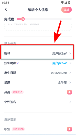 3、在編輯個人信息頁面點擊昵稱,進(jìn)入昵稱修改頁面。