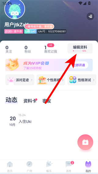 2、在個人頁面中點擊編輯資料,進(jìn)入編輯個人信息頁面。