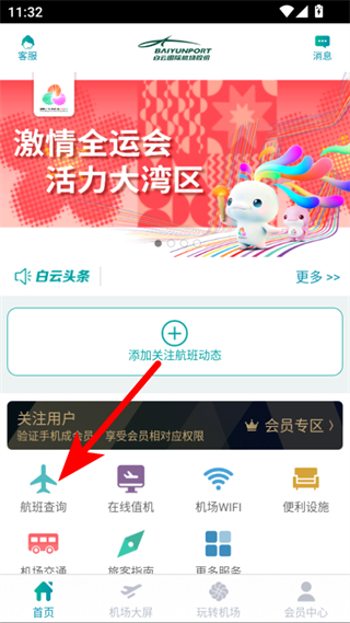 1、打開白云機場APP,在首頁點擊航班查詢選項。
