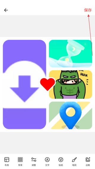 4、拼圖效果調(diào)整滿意后,點(diǎn)擊界面右上角的保存按鈕,將拼好的圖片保存至手機(jī)本地相冊(cè)。