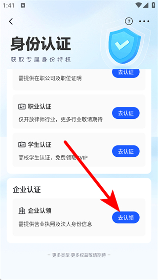 3、在身份認證頁面,找到企業(yè)認證板塊下的企業(yè)認領(lǐng),點擊去認領(lǐng)。